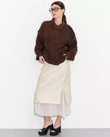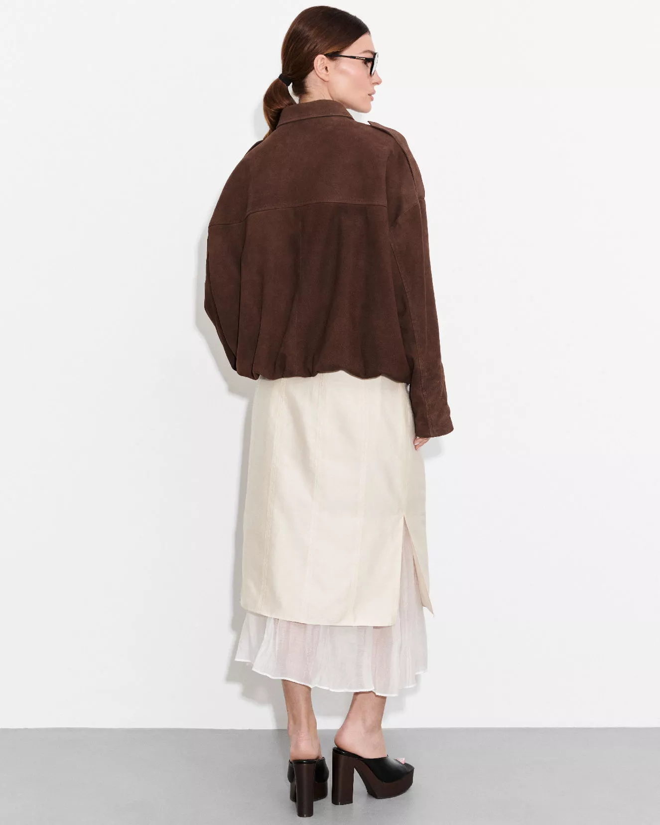 - materiał główny: 100% skóra zamszowa; podszewka: 56% wiskoza, 44% poliester