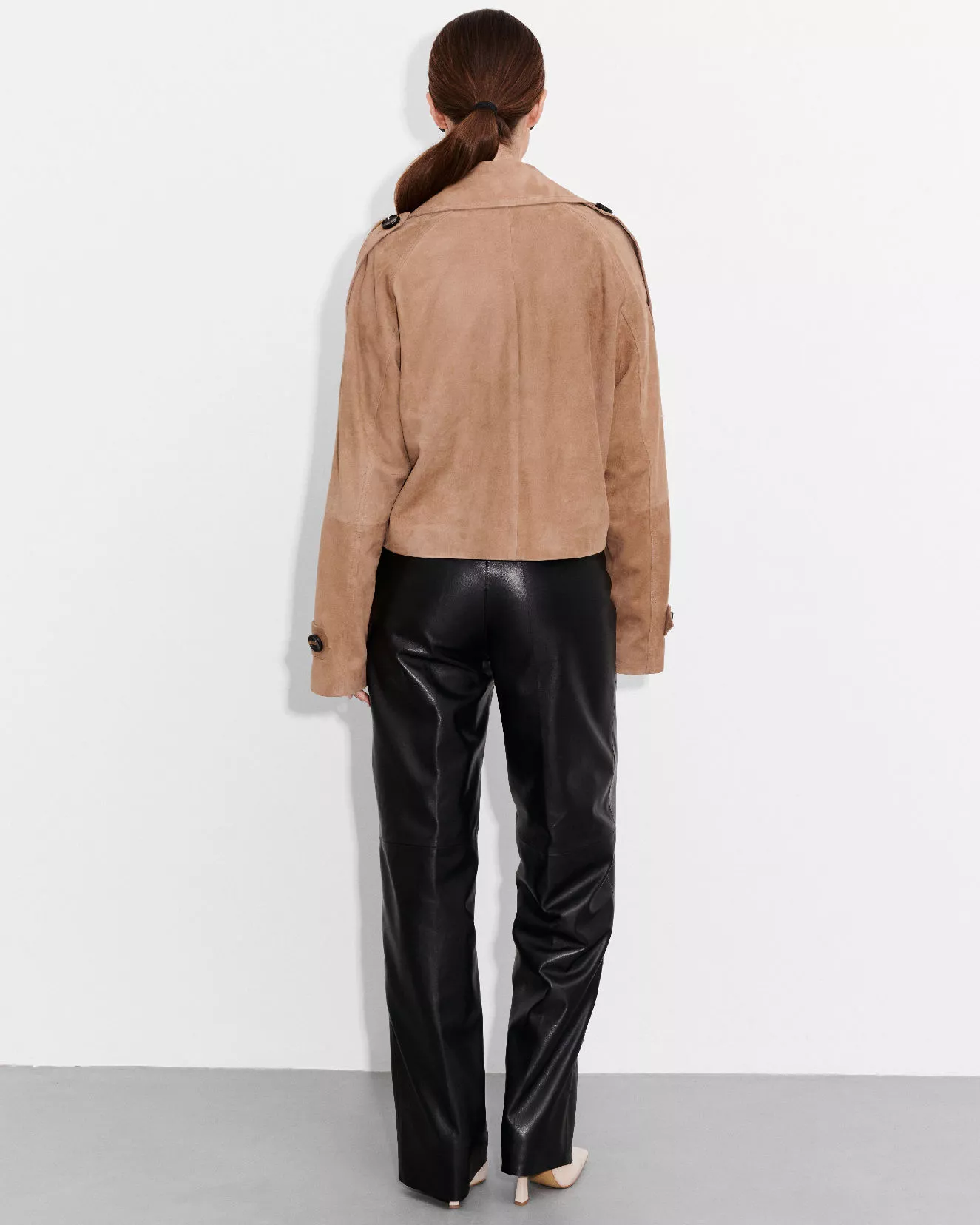 - materiał główny: 100% skóra zamszowa; podszewka: 56% wiskoza, 44% poliester