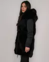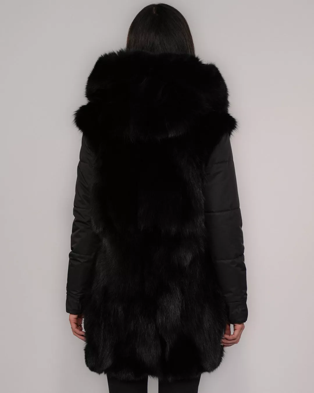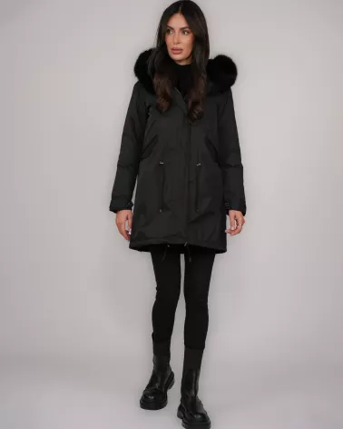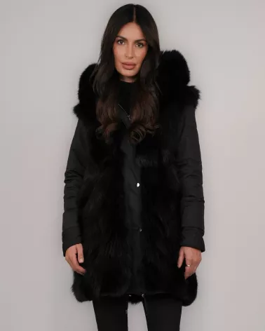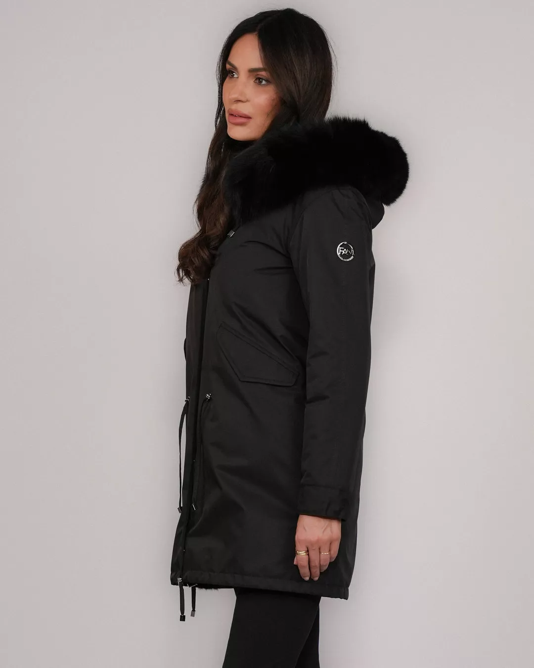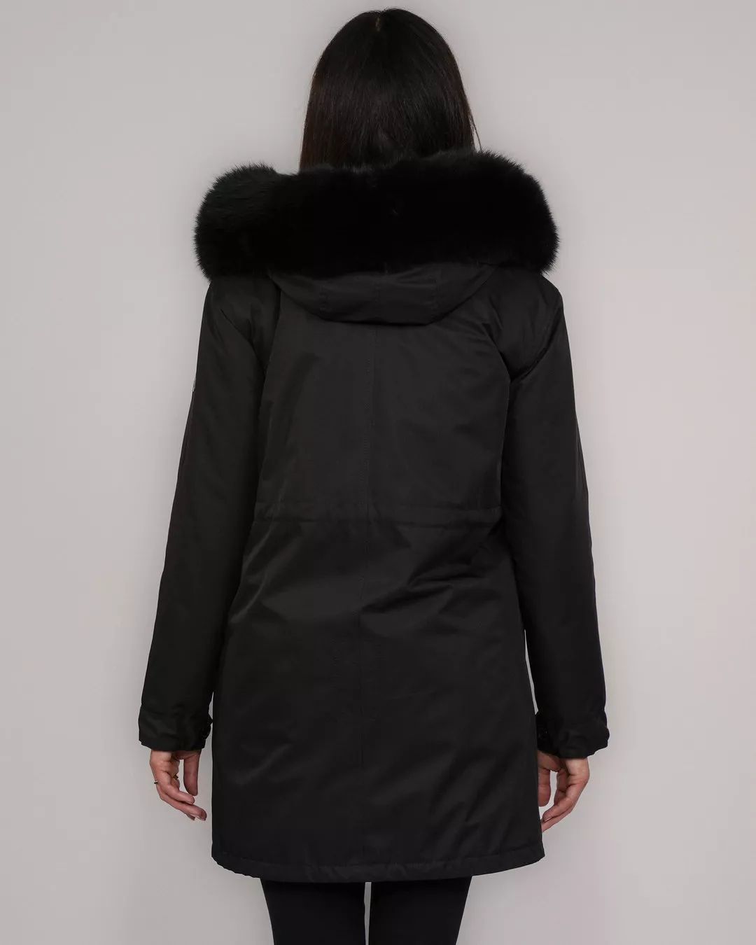 Wodoodporna dwustronna parka z naturalnym futrem lisa – czarna