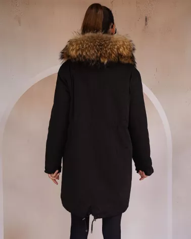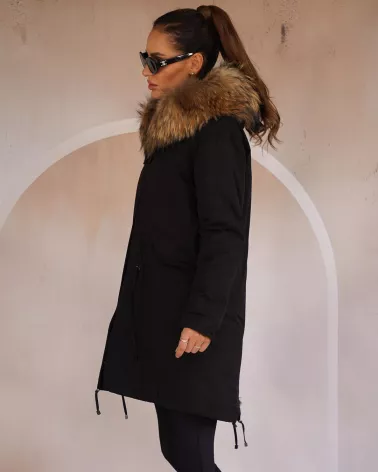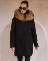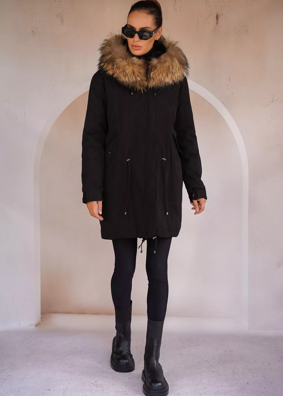 Czarna parka z futrzanym kapturem – elegancja i komfort na zimę