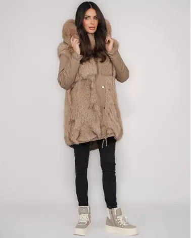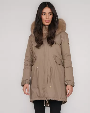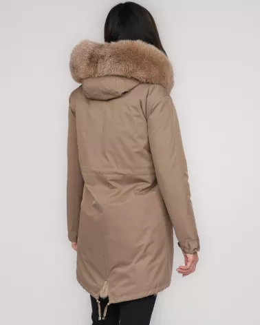 Dwustronna kurtka parka z naturalnym futrem lisa – camel