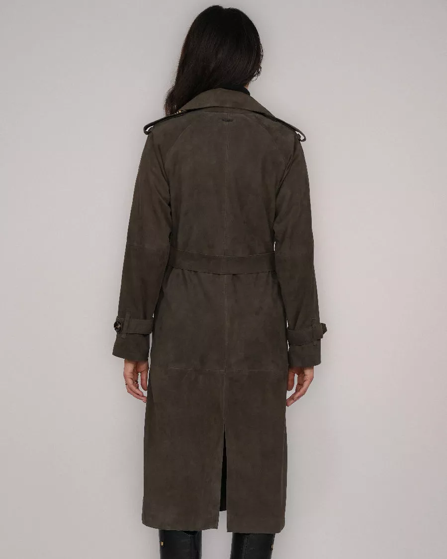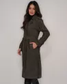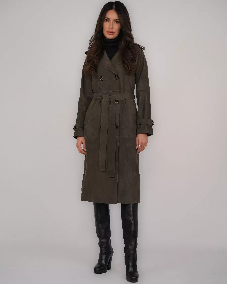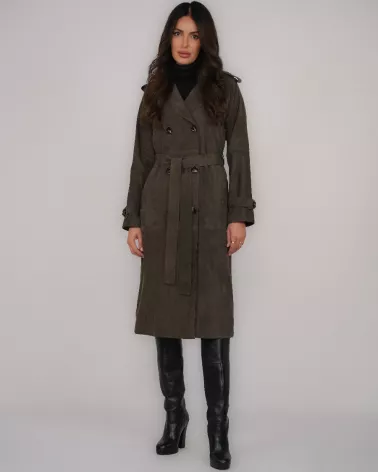 Płaszcz zamszowy z paskiem – ciemna oliwka
