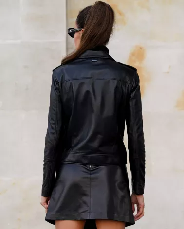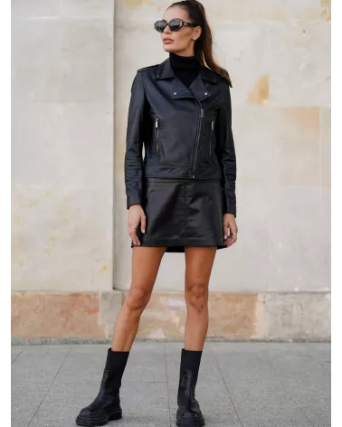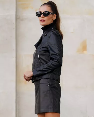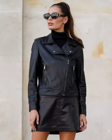 Kurtka damska ze skóry jagnięcej typu ramoneska - czarna