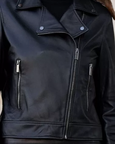 Ponadczasowa czarna kurtka damska wykonana z najwyższej jakości skóry naturalnej to idealny wybór dla kobiet ceniących elegancję z nutą rockowego charakteru. Starannie wykończony, luźny fason sprawia, że model ten doskonale dopasowuje się do różnych stylizacji — od codziennych po wieczorowe.