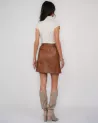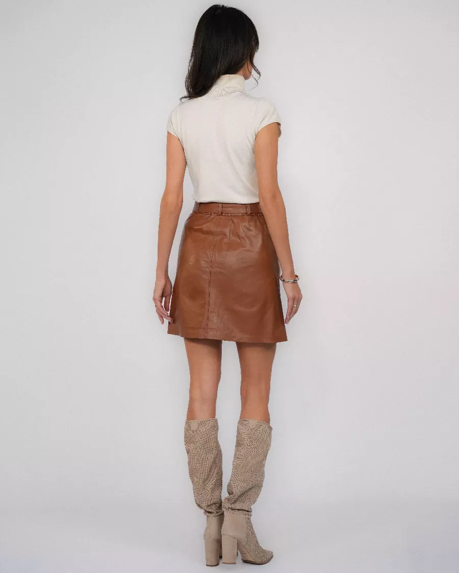 Stylowa i ponadczasowa skórzana spódnica w kolorze whiskey to idealny wybór dla kobiet ceniących klasyczną elegancję w nowoczesnym wydaniu. Wykonana w 100% z miękkiej skóry jagnięcej, zapewnia wyjątkowy komfort noszenia i doskonałe dopasowanie do sylwetki.