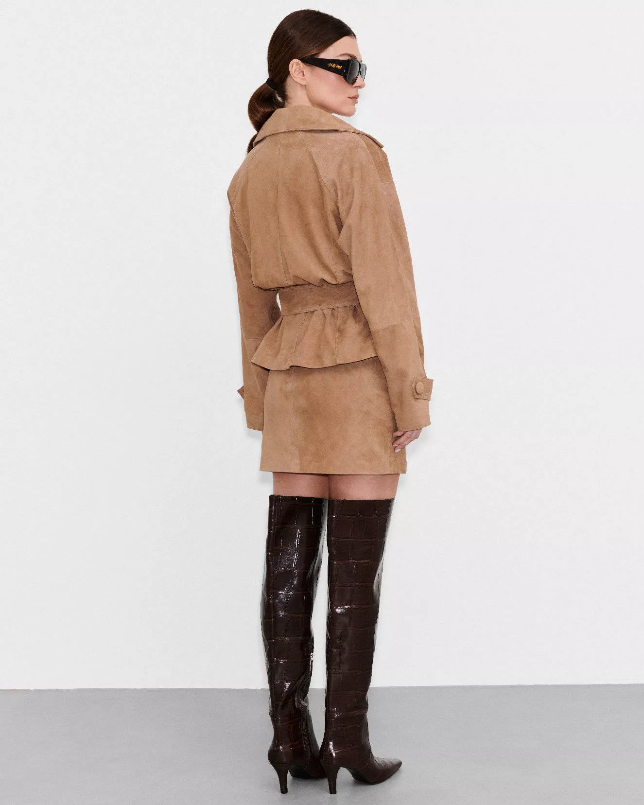 Podkreśl swoją sylwetkę i dodaj stylizacji nuty luksusu dzięki zamszowej spódnicy mini w eleganckim odcieniu tobacco. To wyjątkowy model, który łączy minimalistyczną formę z kobiecymi detalami, tworząc ponadczasową bazę do wielu stylizacji.