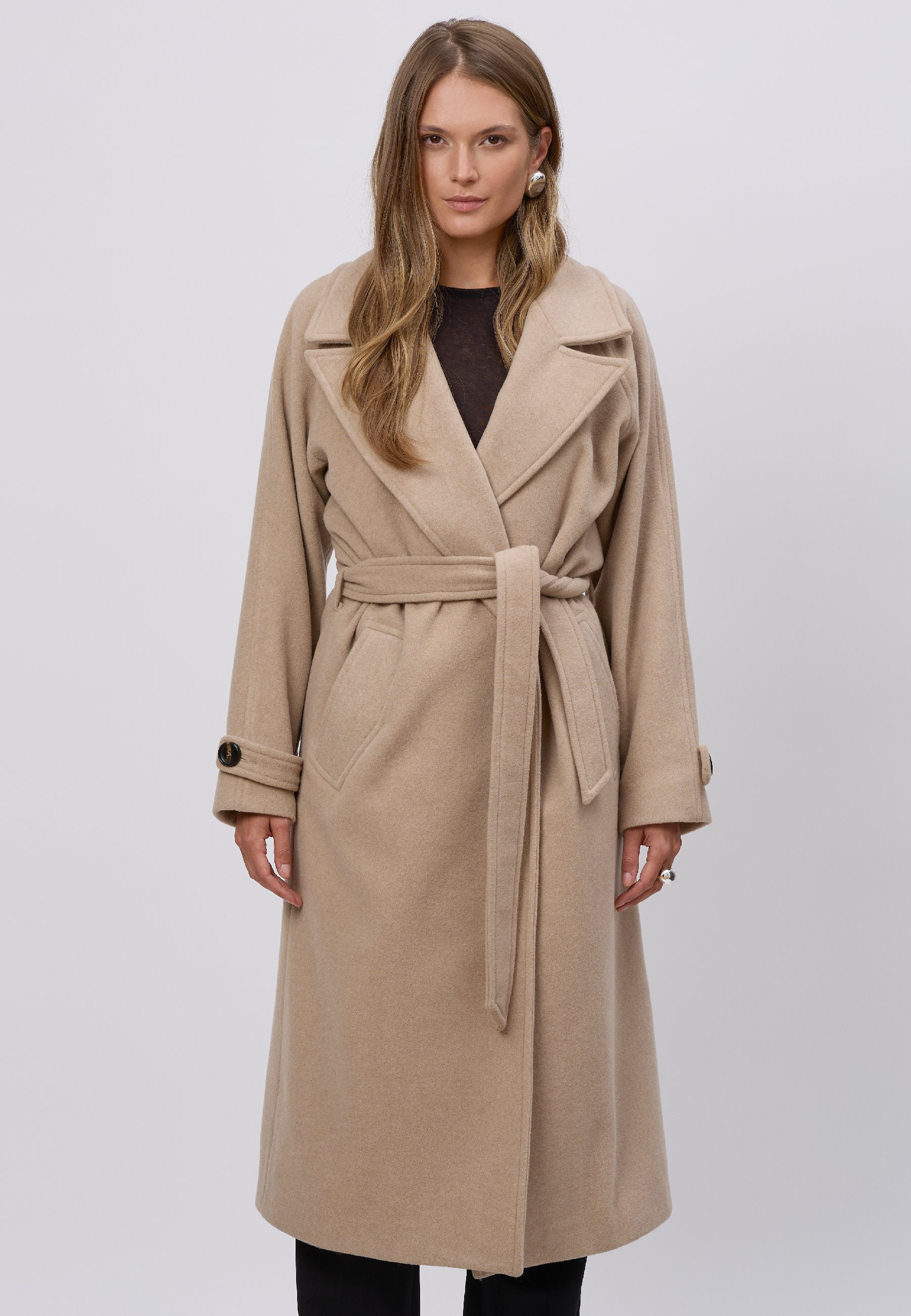 Elegancki, klasyczny płaszcz damski wykonany z wysokiej jakości mieszanki wełny z kaszmirem. Miękki w dotyku materiał zapewnia komfort noszenia i idealnie chroni przed chłodem.