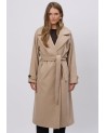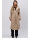 Model nie posiada tradycyjnego zapięcia – w talii przewiązywany jest oddzielnym paskiem, który pięknie podkreśla sylwetkę. Dodatkowo pasek przechodzi przez praktyczne szlufki, dzięki czemu zawsze pozostaje na swoim miejscu.