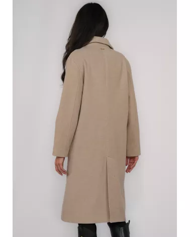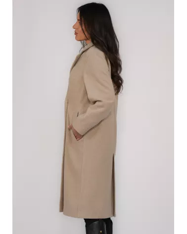 Elegancki, klasyczny płaszcz wykonany z wysokiej jakości mieszanki wełny i kaszmiru, który zapewnia wyjątkowy komfort noszenia oraz ochronę przed chłodem. Jego beżowy kolor sprawia, że jest niezwykle uniwersalny – doskonale komponuje się zarówno z eleganckimi, jak i codziennymi stylizacjami.