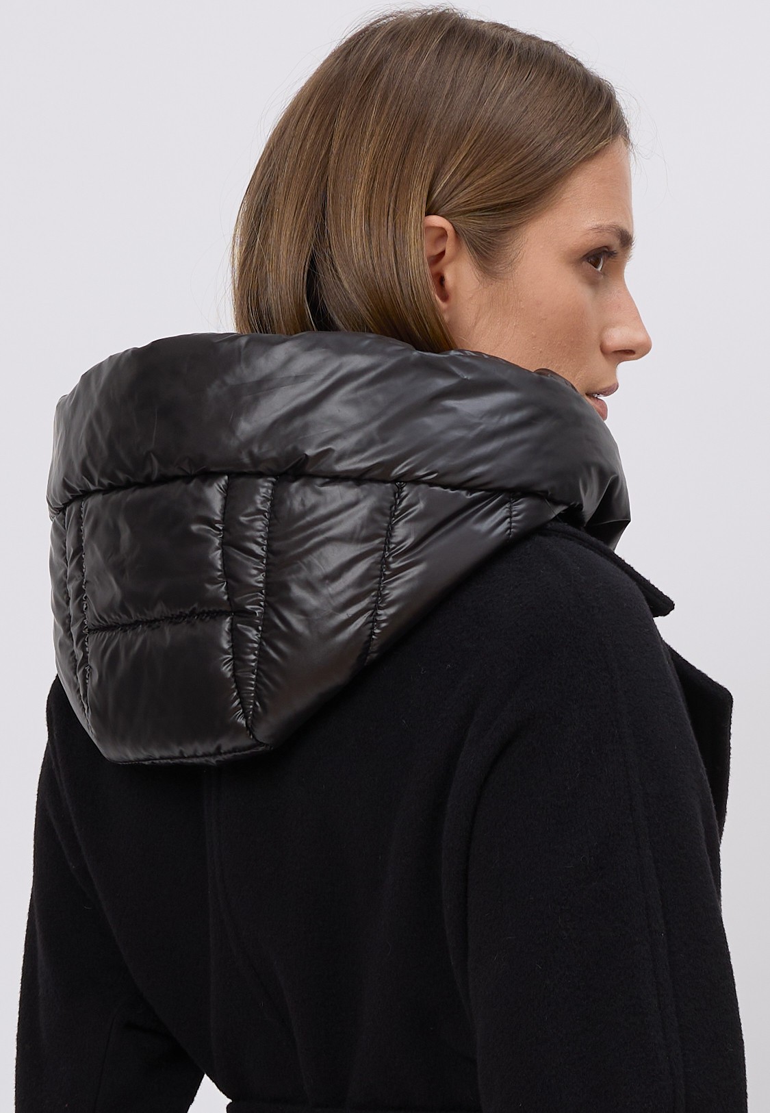 Czarny płaszcz wełniany z kaszmirem i odpinaną podpinką z kapturem