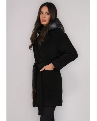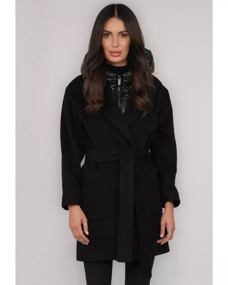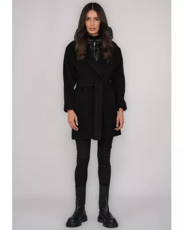 Płaszcz wełniany z kaszmirem i odpinaną podpinką – czarny