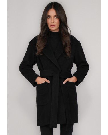 Klasyczny czarny kolor i długość około 90 cm sprawiają, że płaszcz doskonale komponuje się zarówno z eleganckimi, jak i casualowymi stylizacjami.