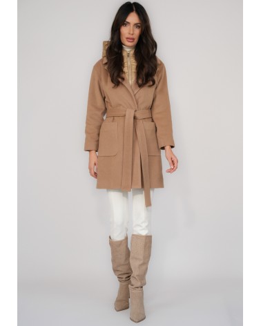 Płaszcz wełniany z kaszmirem z odpinaną podpinką – camel