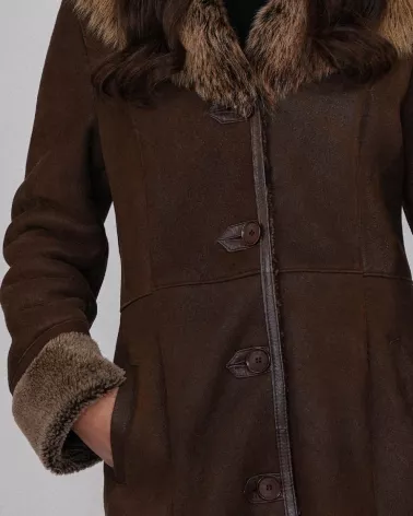 This elegant and timeless women's sheepskin coat is made of 100% genuine merino leather, providing excellent thermal insulation, softness, and comfort on colder days. The classic 105 cm length subtly flatters the figure while providing protection from the cold.