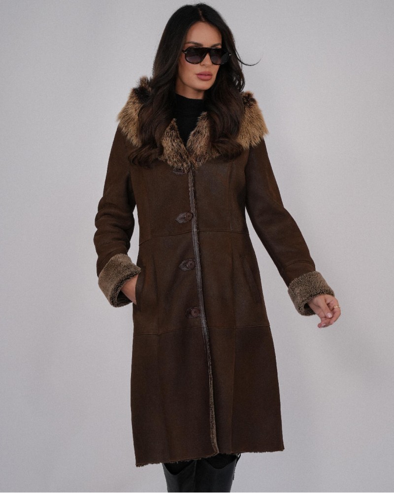 This sheepskin coat is perfect for both everyday outfits and more elegant ensembles, making it a luxurious wardrobe staple for the fall and winter seasons.