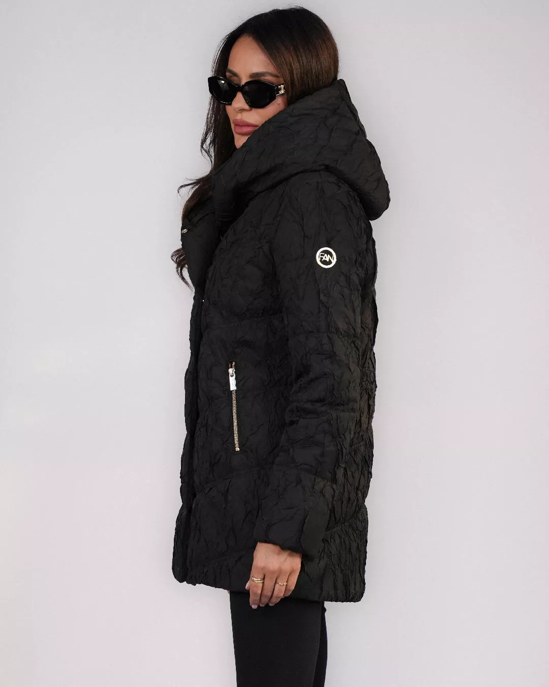 Stylish, cozy, and incredibly functional—this black puffer jacket is the perfect choice for cold days. Its unique, slightly "crumpled" effect adds a modern touch, emphasizing urban style.