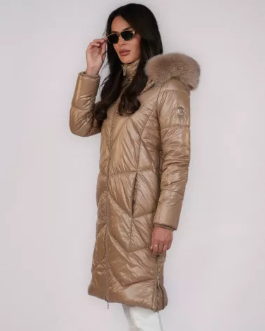 Stylish, elegant, and exceptionally functional – this long, fitted down jacket in camel is the perfect choice for cold days. Its feminine cut beautifully flatters the figure, while the highest-quality materials provide comfort and effective protection against cold and moisture.