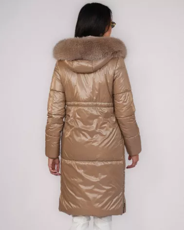 This jacket combines a luxurious look with practical features. Natural fur, a refined camel shade, and refined details make it exceptionally elegant while providing excellent thermal comfort on winter days.