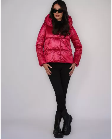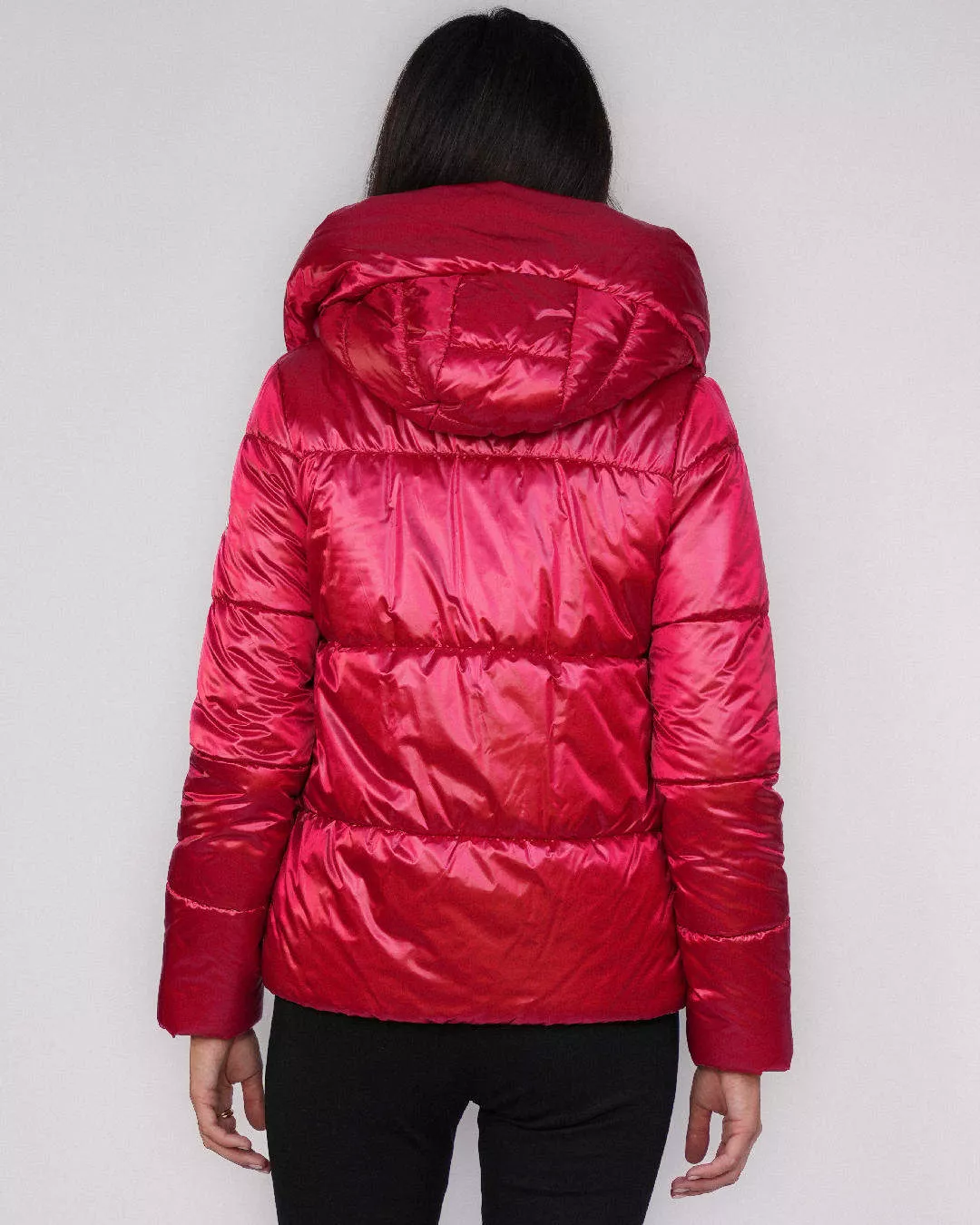 This striking red down jacket is the perfect choice for cold days. Its slightly shiny material and refined cut add a stylish touch, while functional features ensure complete comfort.