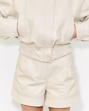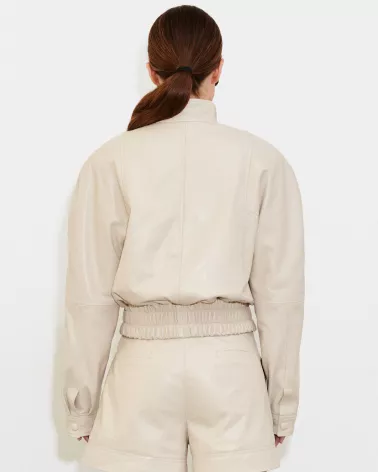Ivory leather bomber jacket