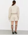 This ivory model boasts a minimalist aesthetic that complements both everyday and more sophisticated outfits. Shoulder pads subtly shape the silhouette, creating a defined silhouette, while a drawstring waist accentuates proportions and ensures comfort.