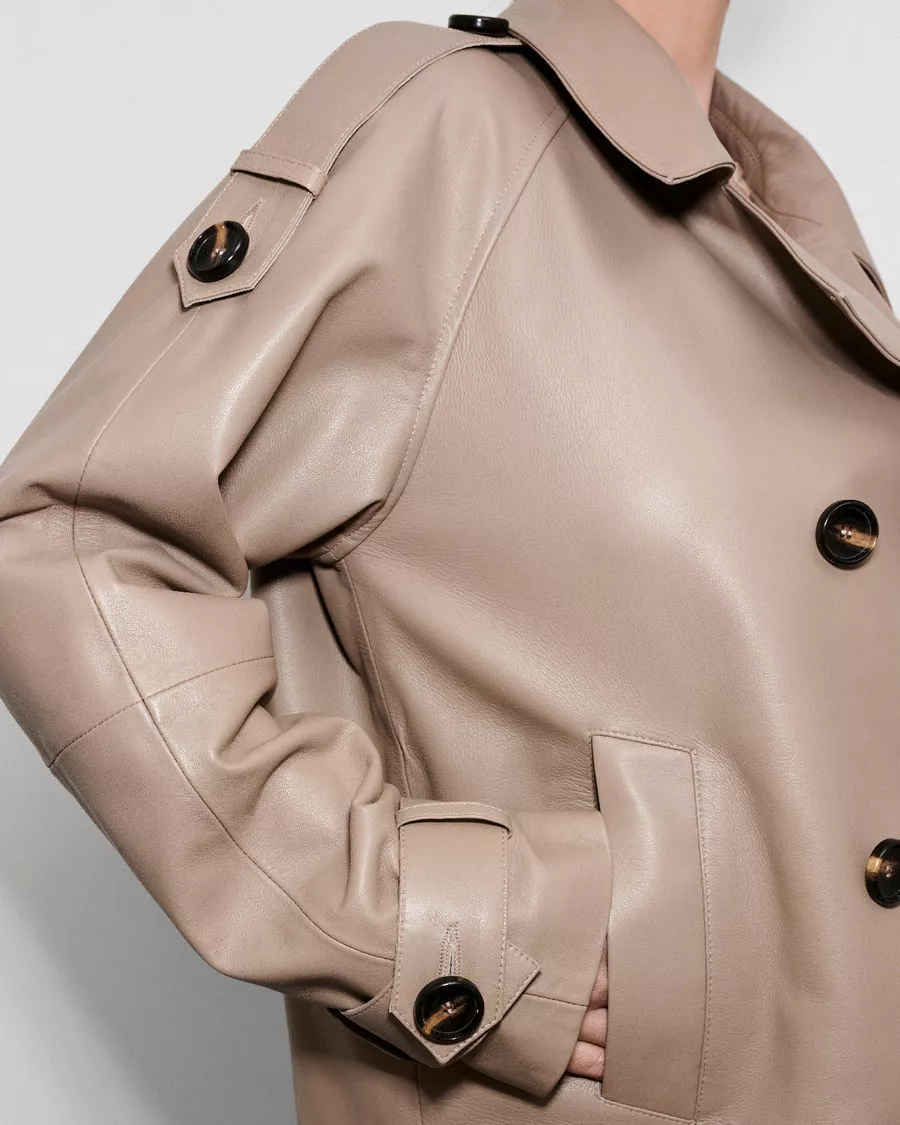This stylish jacket, crafted from premium lambskin, is the perfect blend of classic style and modern design. Its minimalist form is enhanced with elegant details that give the piece a unique character.