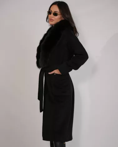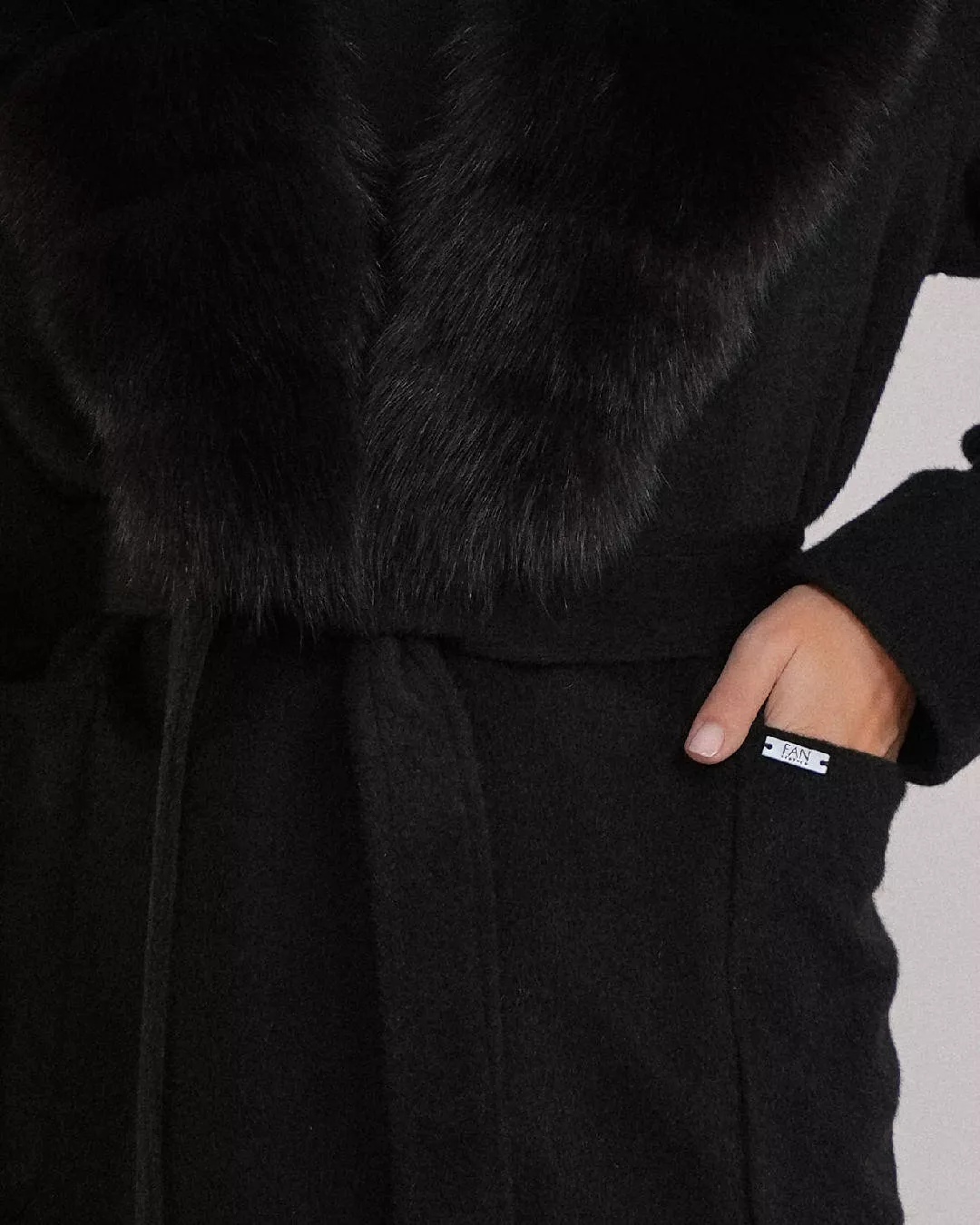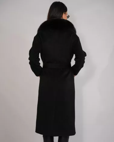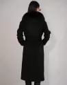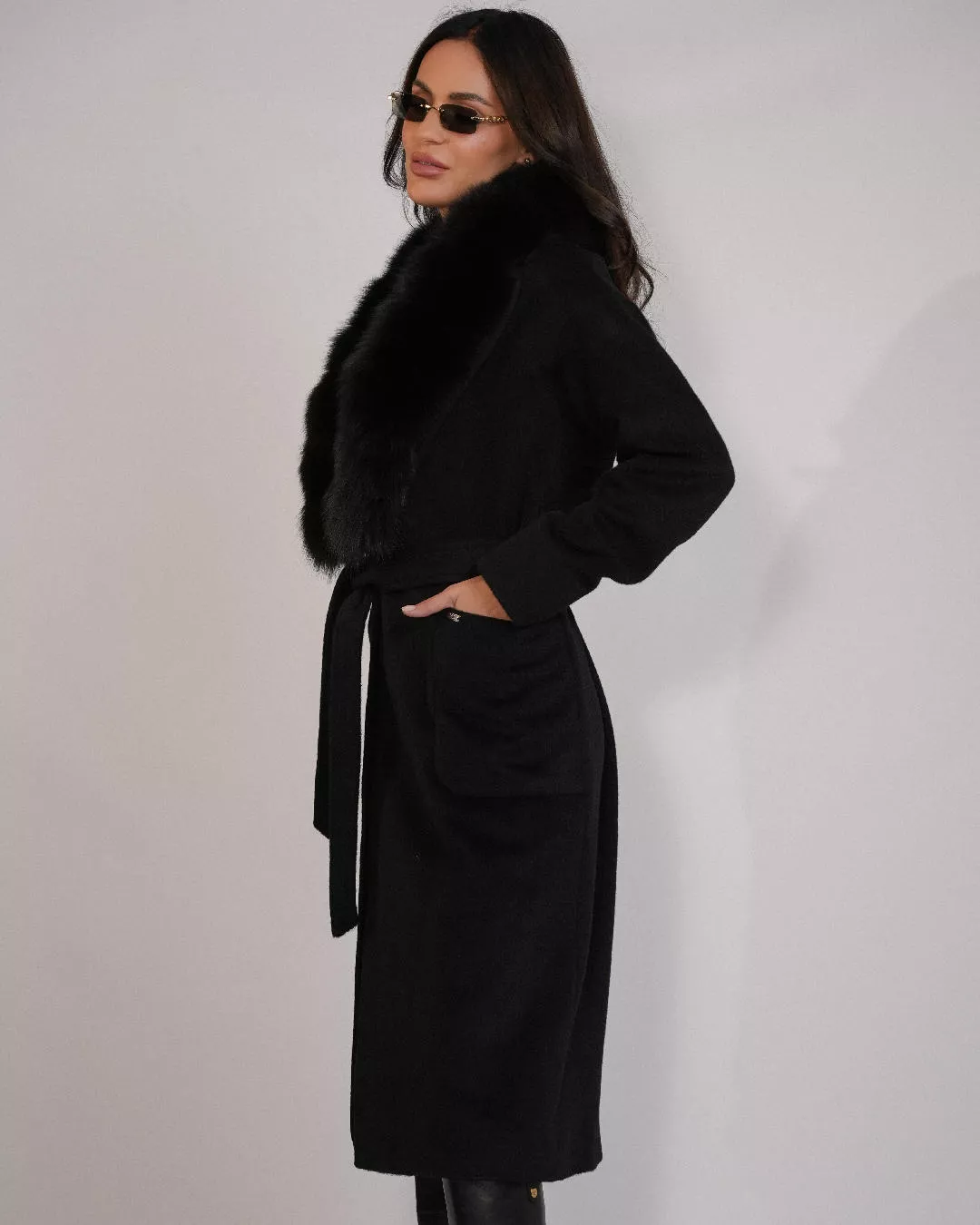 Alpaca Coat with Detachable Fox Fur Trim – Black